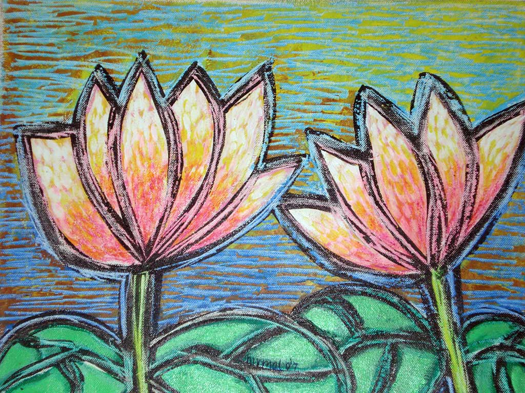 Nirmal Thakur, ‘Happy Lotus’, Mixed Media on Canvas, 13×16 Inches, 2011