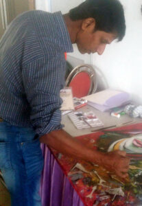 ‘In 1980 he participated in the International Sculpture Symposium held at Panjabi University Patiala and in the same year he attended the National Award-Winning Artists’ Camp at Madras. In 1982, he took part in the Techno Art Camp at the Technological Museum, Bangalore. Then he participated in the Inda-Japanese Sculptors’ Camp organized at Petro-Chemicals Baroda in 1989. He also displayed his works in an exhibition called’ Images of Indian Contemporary Art’ at Neustadt. Germany. In the same year, he participated in an exhibition held during the Festival of India in the USSR and Germany in 1991. His works were also included in the exhibition of ‘Derise de I ‘Universe’ during the Festival of France in India in 1989. Then he participated in the Third, Fourth, and Fifth Triennale (World Art Exhibition) in India. He has held 68 one· man shows in India. Germany, Denmark. Sweden, Scotland, Canada, and Er gland. His works were also shown in the Biennial in Dhaka, Bangladesh, in 2003. In January 2004 he was invited to a sculptors’ camp at J D Arts, Bhubaneshwar. This was followed by an International Sculptors’ Camp 10th Triennale which took place at the Govt. College of Arts, Chandigarh, and then another National Sculptors’ Camp at the NZCC, Kalagram, Chandigarh, and also one at the Government College. Sector 11. Chandigarh was organized by the Chandigarh Lalit Kala Akademi in 2006. In 2007, I was again invited by the Delhi Regional Centre to participate in the National Sculptors’ Camp and another at Marni Hills, Tikkar Taal Tourist Resort, Haryana.’